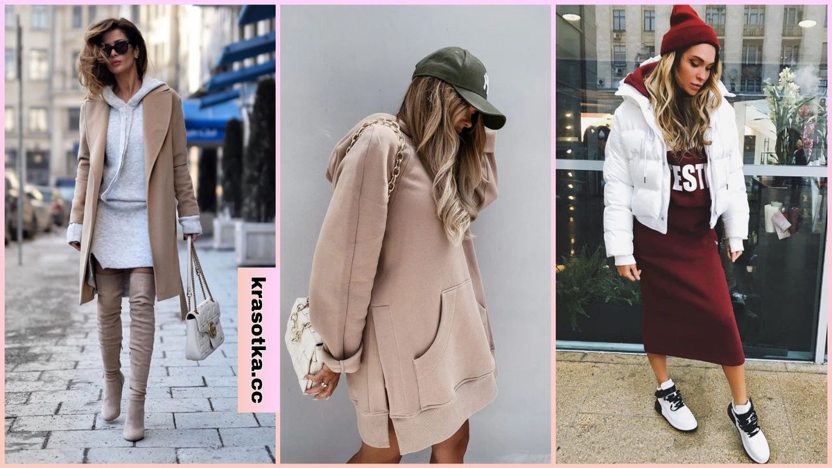 Модные тренды предлагают выбирать для повседневного гардероба стиль кэжуал. Этот стиль позволяет чувствовать себя легко и свободно, оставаясь при этом элегантным и стильным. Среди множества вариантов стоит выделить женственное и удобное платье с капюшоном. Спортивная одежда с элементами женственности давно завоевала популярность среди женщин всех возрастов. Платья с капюшоном создают в стиле рубашек , толстовок, худи и других комфортных вещей. Некоторые модели выглядят нарядно, поэтому их можно носить даже в офис. Цветовая палитра позволяет подобрать платье с капюшоном под любую фигуру и образ жизни. Платье с капюшоном свободного плана позволит подчеркнуть талию, если использовать на нем ремешок или пояс. Дополнительно к такому платью дамы добавляют тонкий кардиган, который делает образ более элегантным и стильным. Желательно, чтобы длина платья и кардигана повторяли друг друга, так образ будет выглядеть гармонично. Читайте также: Как стильно носить платье с длинным рукавом в [year] го