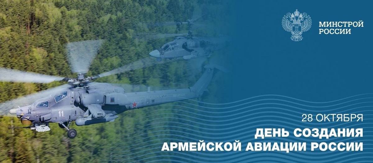 🔵Сегодня армейская авиация — это ударная мощь и маневренность, транспортные и разведывательные операции, эвакуация и поддержка сухопутных войск. Летчики армейской авиации являются бесстрашными людьми, которые выполняют сложные и ответственные задачи в воздухе, вносят свой склад в обороноспособность страны. 🎉 Поздравляем с профессиональным праздником! Желаем крепкого здоровья, успехов в службе и мирного неба над головой! Минстрой России в MAХ (https://max.ru/minstroyrf)
