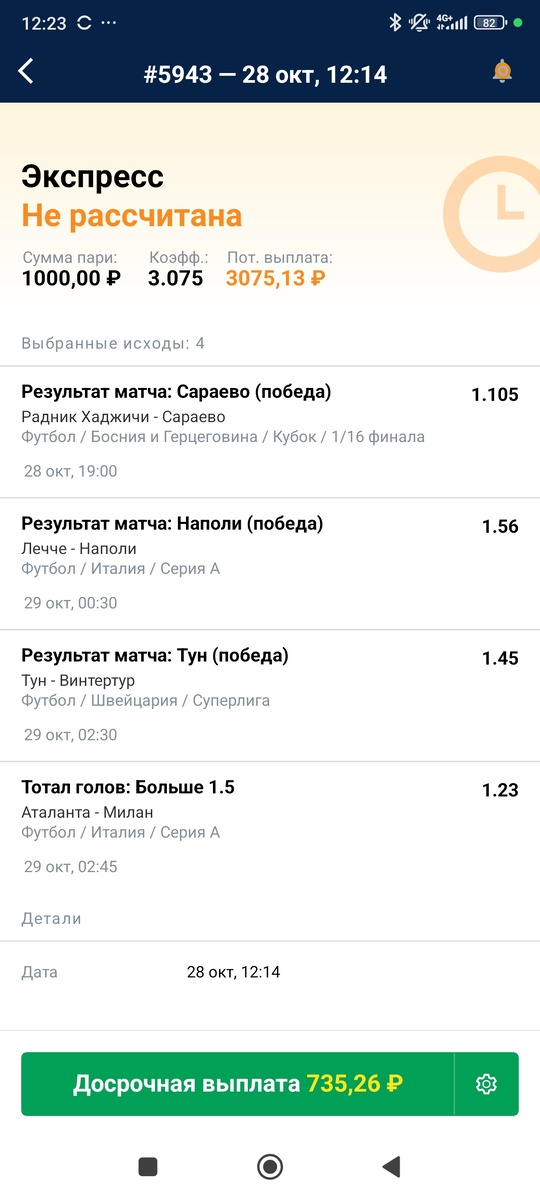 Вчера был один экспресс и он зашел. Сегодня поставил 4 экспресса, не люблю ставить на кубки, но за неимением хорошей линии рискну