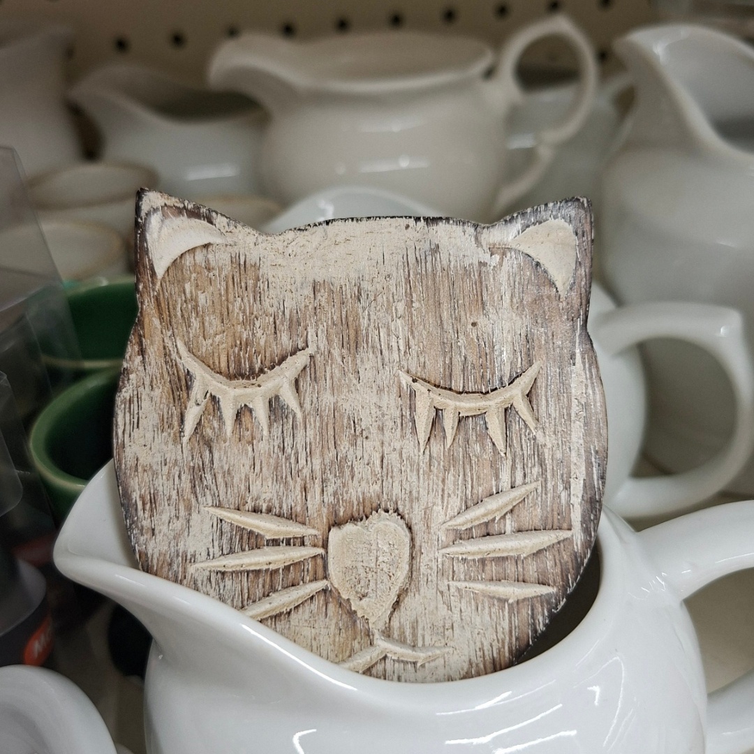 Если продолжить тему дерева, мне приглянулись кошки! В "лежанке" Подставки для стаканов. Хорошо сделаны. Но вот заводить еще сразу столько котов, Жаба была не готова. Потом ведь буду искать в подарок "кошатникам"....Если бы можно было "завести" лишь одного, точно взяла, не как подставку а как декор. приклеила бы на доску и сделала бы декор на стену...