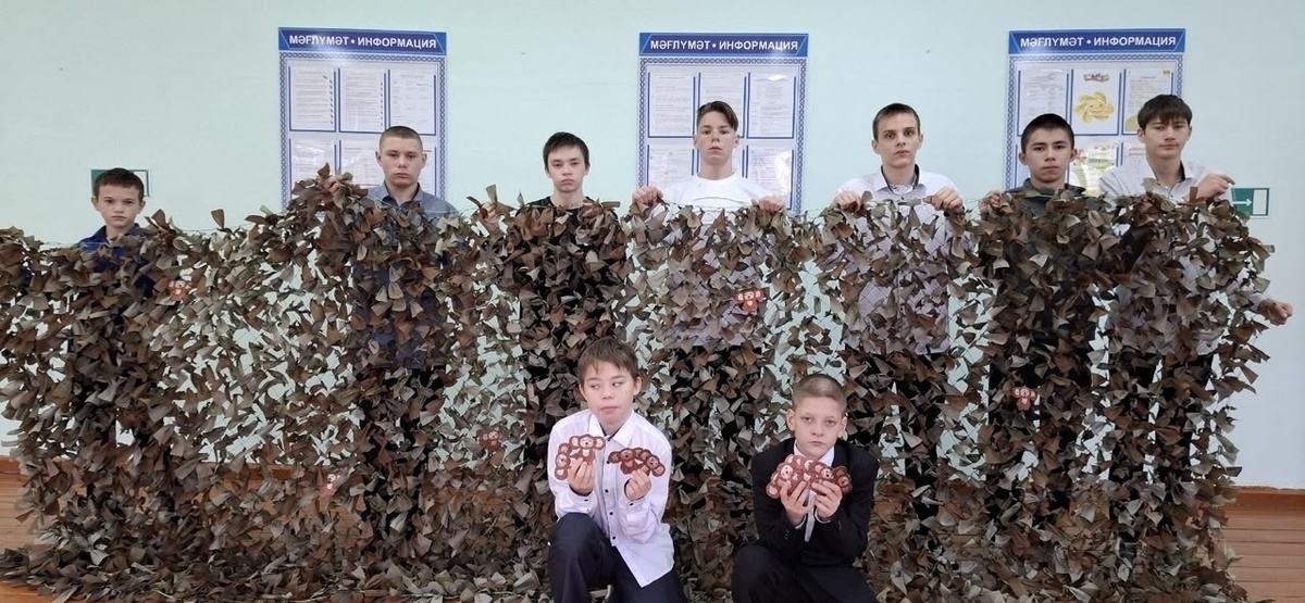 Во всех регионах России сейчас плетут маскировочные сети для воинов, участвующих в спецоперации. Добровольные помощники уверены, что маскировочная сеть для солдата, который находится в окопе или на огневой позиции, не менее важна, чем бронежилет и каска. Таким образом, маскировочные средства остаются важнейшей составляющей вспомогательного оснащения на фронте. Более того, прогресс в сфере систем наблюдения и обнаружения повышает её значимость. Волонтёры школы №12 под руководством учителя Оксаны Газизовой активно плетут маскировочные сети для тех, кто сейчас на передовой. Ребята передали семнадцатую сеть, изготовленную своими руками, для отправки с очередным гуманитарным грузом. Кроме того, школьники смастерили в подарок бойцам маленькие талисманы-чебурашки и всей школой собрали сладости для солдат.