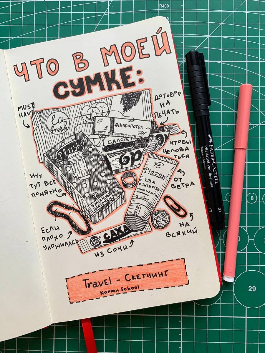 Если не знаете, что нарисовать, вот простая и интересная идея — рисуем содержимое вашего рюкзака