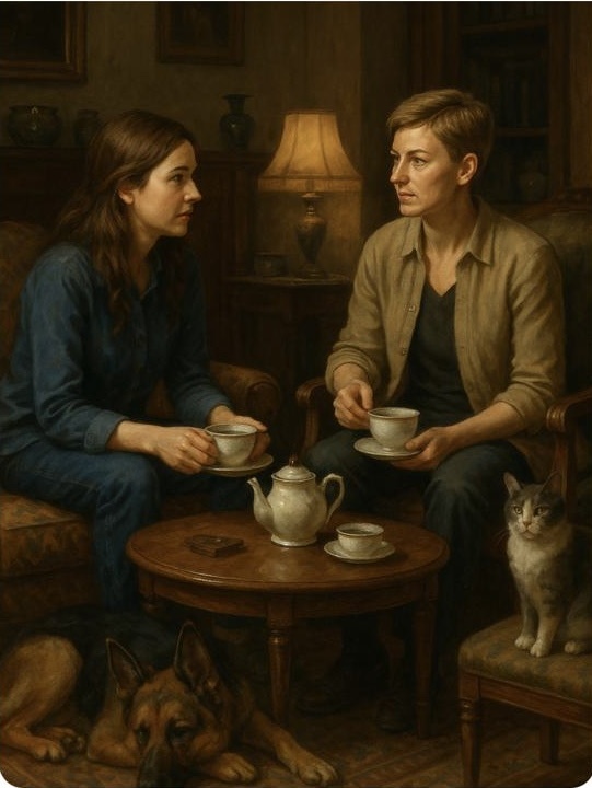 Глава 4. Тамара Старый сталинский дом стоял на углу улицы, утопая в каштанах и тишине. Толстые стены, арочные окна, лепнина под балконами — надёжный, как сама Тамара. Когда я поднималась по лестнице, воздух был пропитан чем-то знакомым — смесью кофе, старого дерева и сигарет. Я позвонила. За дверью загавкал пёс, басом, как сторож на службе. — Кто там, живые? — донёсся голос. — Я. — О! Святая простота! — воскликнула Тамара. — Заходи, пока не передумала! Дверь распахнулась — и на пороге стояла она: высокая, крепкая, в халате и с сигаретой. Волосы короткие, глаза — ясные, цепкие. На ней всё сидело, как броня — даже домашняя одежда выглядела уверенно. — Ты как всегда, — улыбнулась я. — Сама сталь. — А как иначе? — отмахнулась она. — Иди сюда, не стой. Пёс не укусит, если не дёрнешься. Овчар Ральф обнюхал меня и, удовлетворённо фыркнув, ушёл в комнату. Кошка — серо-белая, пушистая — гордо прошла мимо, будто проверила, достойна ли я заходить. — Вот, — сказала Тамара. — У меня все с характер
