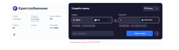 - История работы — сервис пережил не одну волну, когда в Москве закрыли криптообменники, и продолжает обслуживать клиентов.