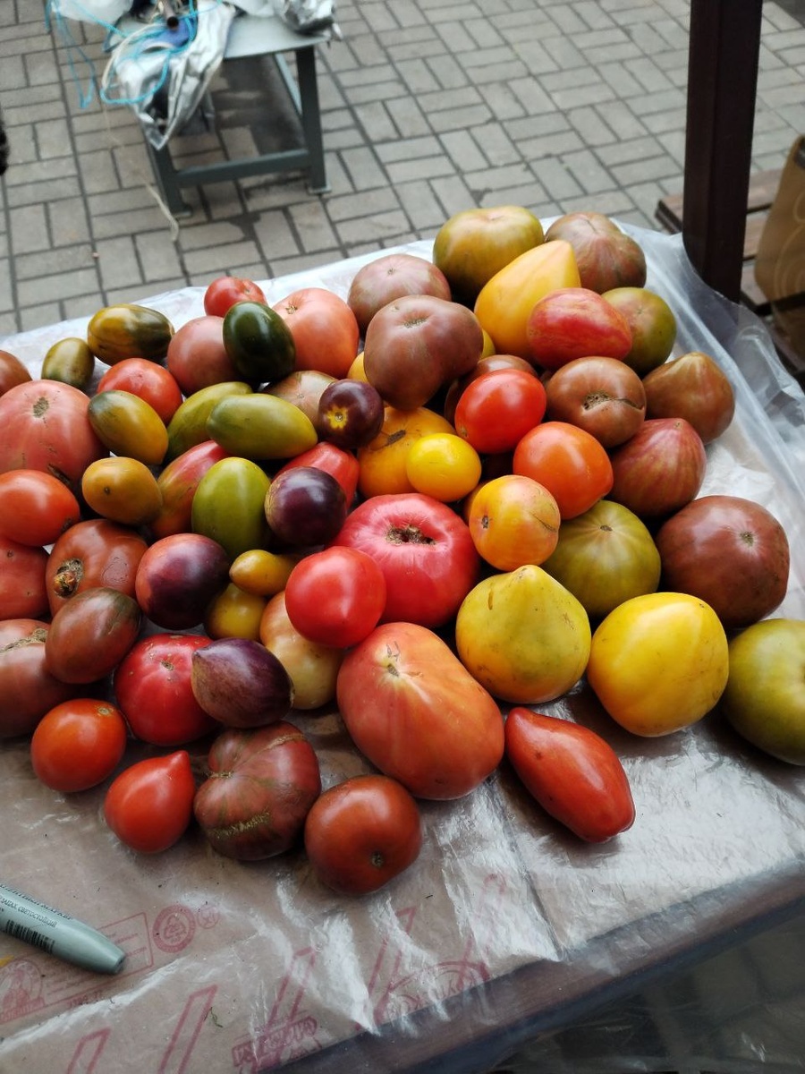 Я сегодня на рынке с тюльпанами и помидоры! Большая часть гномы, но есть и обычные среднеспелые. Прелесть, Козула 72, Тайга, Полуночное солнце и новенький розовый Пендино куоре👍