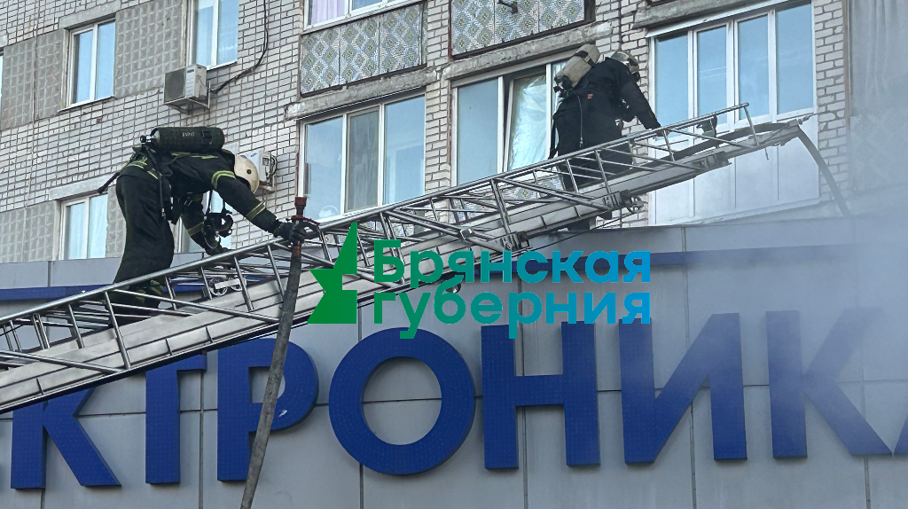 Опубликовано видео пожара в доме с магазином «Электроника» в Брянске