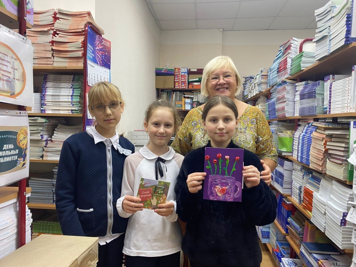 Π ΠΠ΅Π½Ρ Π±ΠΈΠ±Π»ΠΈΠΎΡΠ΅ΠΊΠΈ ΡΡΠ΅Π½ΠΈΠΊΠΈ 4 Β«ΠΒ» ΠΊΠ»Π°ΡΡΠ° ΠΏΠΎΠ·Π΄ΡΠ°Π²ΠΈΠ»ΠΈ Π±ΠΈΠ±Π»ΠΈΠΎΡΠ΅ΠΊΠ°ΡΡ ΠΠΈΠΊΡΠΎΡΠΈΡ ΠΡΠΊΠ°Π΄ΡΠ΅Π²Π½Ρ ΠΈ Π²ΡΡΡΠΈΠ»ΠΈ Π΅ΠΉ ΠΎΡΠΊΡΡΡΠΊΡ, ΡΠ΄Π΅Π»Π°Π½Π½ΡΡ ΡΠ²ΠΎΠΈΠΌΠΈ ΡΡΠΊΠ°ΠΌΠΈ. ΠΠ΅ΡΠΈ ΠΏΠΎΠ΄Π³ΠΎΡΠΎΠ²ΠΈΠ»ΠΈ ΡΡΠΏΠ»ΡΠ΅ ΠΏΠΎΠΆΠ΅Π»Π°Π½ΠΈΡ ΠΈ Π±Π»Π°Π³ΠΎΠ΄Π°ΡΡΡΠ²Π΅Π½Π½ΡΠ΅ ΡΠ»ΠΎΠ²Π° Π·Π° Π·Π°Π±ΠΎΡΡ ΠΎ ΡΠΊΠΎΠ»ΡΠ½ΠΎΠΉ Π±ΠΈΠ±Π»ΠΈΠΎΡΠ΅ΠΊΠ΅ ΠΈ ΠΏΠΎΠΌΠΎΡΡ Π² Π²ΡΠ±ΠΎΡΠ΅ ΠΊΠ½ΠΈΠ³.