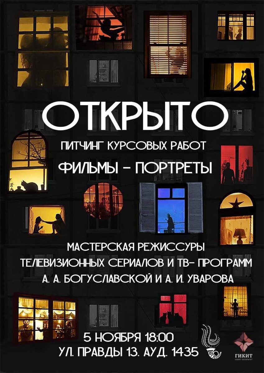 Мастерская режиссуры телевизионных сериалов и ТВ-программ Анны Богуславской и Алексея Уварова приглашает на открытый питчинг курсовых работ 📽