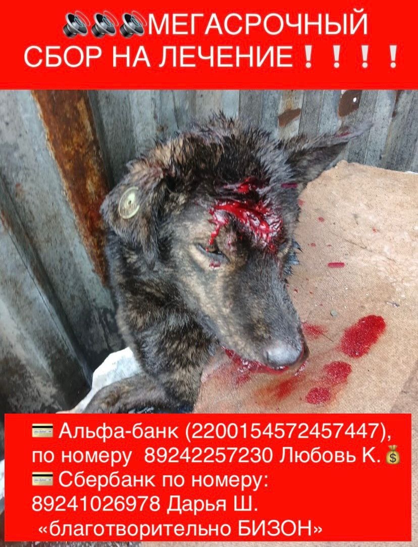 *МЕГАСРОЧНО!* *СБОР СРЕДСТВ ДЛЯ БИЗОНА!* Помощь можно оказать 💳*Альфа-банк* (2200154572457447), по номеру 89242257230 Любовь К.💰 💳 *сбербанк по номеру*: 8 924 102-69-78 Дарья Ш. *«благотворительно БИЗОН»* *Двое суток ада.* Двое суток невыносимой боли, страха и равнодушия. Бизона сбила машина — и подлый трус даже не остановился, оставив его умирать на дороге. Он лежал в луже собственной крови, истекал, дрожал, а люди проходили мимо. На базе где он жил никак участие в его судьбе принять не захотели! *Никто не помог.*😭 ПРЯМО СЕЙЧАС его везут в клинику, у него *подозрение на спинальную травму* — он не может встать, ему срочно нужна операция, капельницы, шанс на жизнь. Но лечение стоит огромных денег... *Бизон не виноват.* Он не заслужил такой жестокости. Он заслужил бороться, жить! 🥺🥺🥺 *Не будьте равнодушными!* Он уже пережил столько боли — давайте дадим ему шанс! Он не должен умирать из-за человеческой жестокости и равнодушия. *Спасите его!*🐾♥️