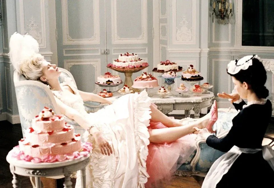 На шоу Vogue World 2025: Hollywood Джулия Гарнер вышла в образе, вдохновлённом Марией-Антуанеттой — платье из кремового шёлка с рюшами, прозрачными рукавами-воланами и розовой тюлевой подкладкой, воспроизводя одно из костюмов фильма Софии Копполы. Она выбрала обувь из новой коллекции Manolo Blahnik, созданной в честь Марии-Антуанетты — розовые мюли с голубыми шнурками и чёрной окантовкой.