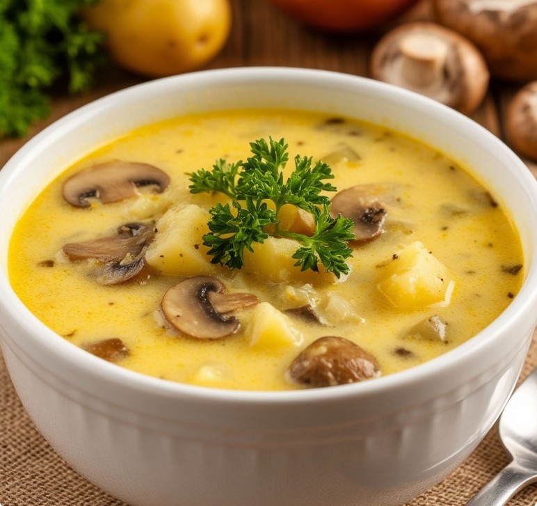 А потому что в воздухе — тишина, наполненная тёплым ароматом грибов, картофеля и растопленного сыра. Есть только пар над тарелкой и ощущение, что время замедлилось — специально для вас. Почему именно этот суп создаёт такое пространство? Потому что он не требует ничего взамен. Он не просит вас быть идеальной хозяйкой. Не заставляет объяснять, почему нет мяса. Не ждёт восторгов. Он просто есть — нежный, бархатистый, с лёгкой земляной глубиной от грибов и мягкой сладостью картофеля.
