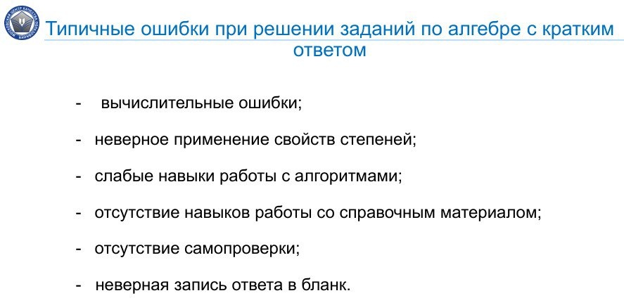 Вычислительные ошибки, и правда, самые распространенные. К сожалению, к концу 9-го класса ребята забывают как совершать арифметические действия с обыкновенными и десятичными дробями.