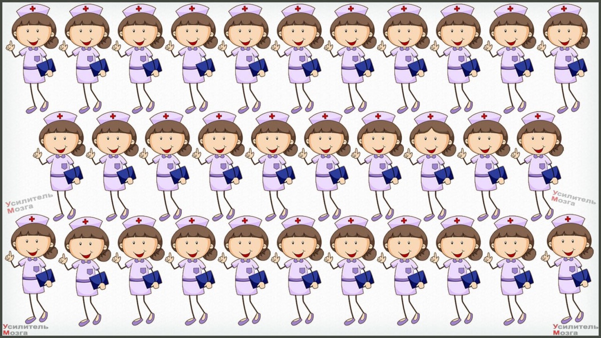 👨⚕️В первой картинке вам нужно попытаться максимально быстро найти двух медсестёр с небольшими отличиями, а во втором задании — найти двух отличающихся врачей. Время, за сколько справились, — пишите в комментариях.
