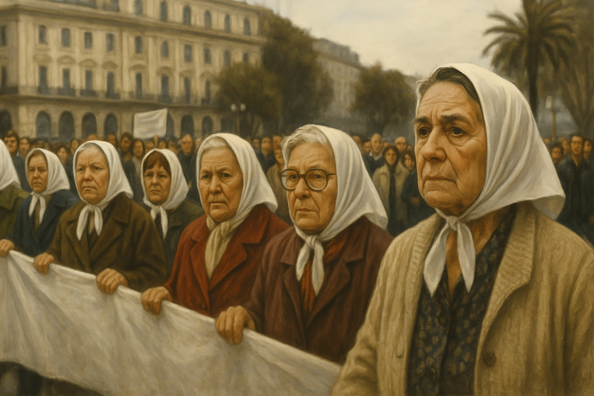 Сначала их называли безумными, потом — врагами государства. Полиция стреляла по ним, активисток похищали и убивали. Но каждую неделю, по четвергам, женщины снова выходили — с белыми платками на голове, символом детских пелёнок.