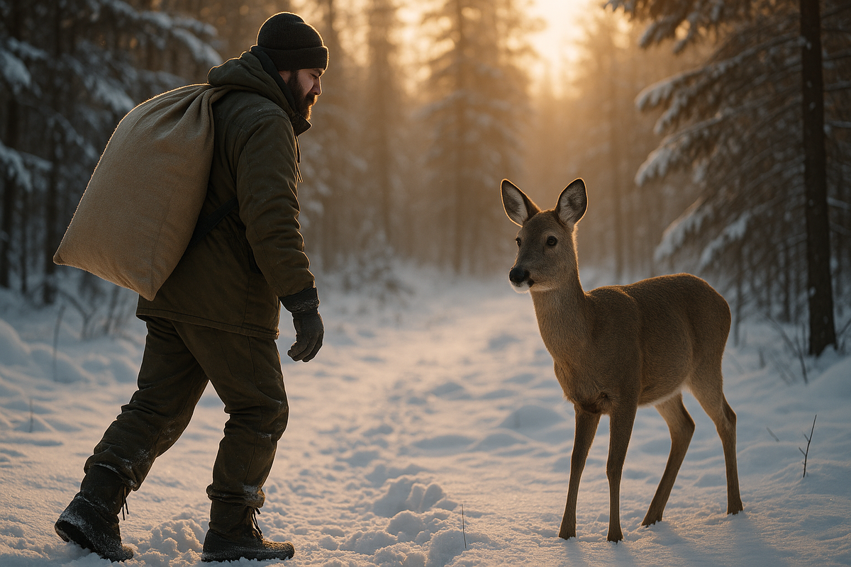 И в эти дни в лес выходит не браконьер, не турист, а охотник, который несёт мешок зерна, соль и старый термос с тёплой водой для собак.