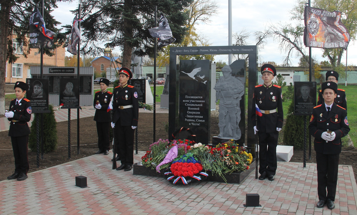 В хуторе Белом Ленинградского округа навсегда застыли в камне пятеро сыновей. Пять жизней, пять историй, прерванных войной. Обелиск и Аллея Славы, открытые всем миром, стали местом, где боль утраты соседствует с бесконечной гордостью и вечной памятью. И в день, когда с монумента спадало символическое покрывало, само небо, кажется, отдало им честь. Тишину на главной площади хутора Белого нарушал лишь чёткий шаг ребят из церемониального отряда «Честь имею!». В их руках – настоящие карабины, на их лицах – суровая серьёзность не по годам. Так, с самого утра, здесь задавалась особая, торжественная и щемящая атмосфера. Хутор снова хоронил своих героев – на этот раз в памяти, отлитой в камне. Памятник бойцу в разгрузке и гранитные плиты с портретами пяти погибших земляков – это народный памятник в самом прямом смысле. Идея увековечить память павших родилась в семье ефрейтора Вадима Завадского, а воплотили её в жизнь всем миром, на пожертвования хуторян. Право открыть мемориал предоставили гла