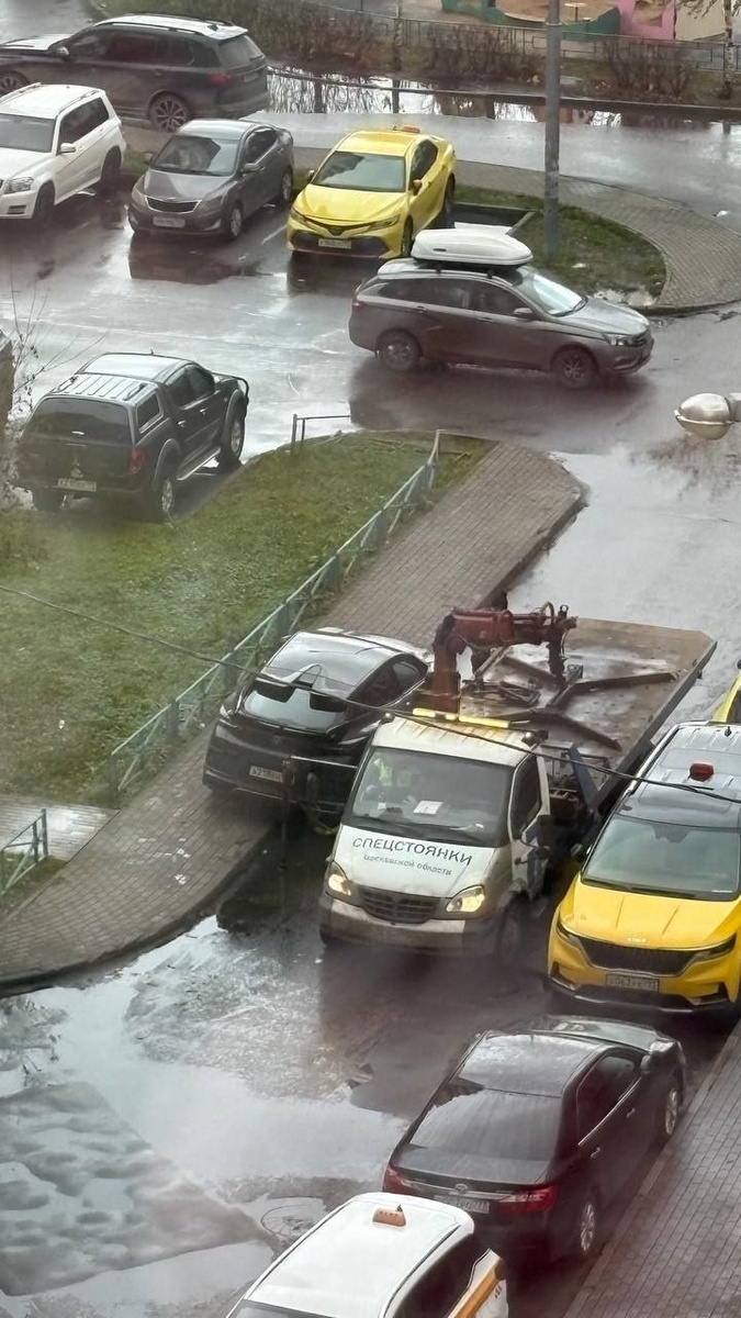 ⚡️Сейчас в Дрожжино эвакуируют все машины, которые стоят на тротуаре.