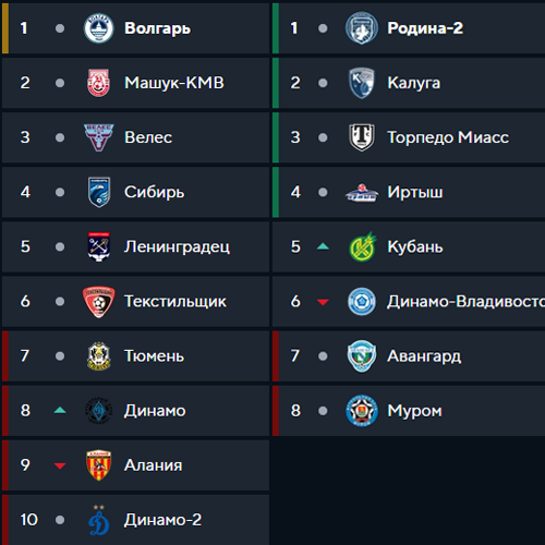 Начнем с группы "Золото", в которой пока еще ничего не ясно. На всякий случай, напомню, что зимой переход в ФНЛ-1 закрыт, но победитель группы получает право на стыки, летом, в том случае, если не займет места с 1 по 3 в весенней части, в которой очки обнуляются, а четверо неудачников будут заменены на 4 лучших из группы "Серебро". Положение астраханского Волгаря за 3 тура до финиша не кажется уверенным. Машук из Пятигорска отстает всего на 1 очко, а подольский Велес на 3 очка. При этом, вся тройка в прошедшем туре очки потеряла. Далее в 4 очках Сибирь и Ленинградец, но Новосибирск в 5 последних матчах имеет 3 поражения, а областные 1. Вообще очень "веселая" группа подобралась. Несмотря на разрыв между первым и последним местом в 17 очков, исход каждого отдельно взятого матча предугадать сложно. Например, потерявшее уже фактические шансы на сохранение Динамо-2 победило Машук (тогда шел на 1 месте), а неделю спустя не справилось с Аланией (которая идет на соседней строчке). Если говорить о вылете в "Серебро", то шансы остаться у Алании и Динамо-2 математические еще есть, но по факту они нулевые. Еще две путевки разыграют между собой Динамо Киров, Тюмень и Текстильщик Иваново. Последние идут (на момент написания текста) на спасительной 6 строчке и имеют игру в запасе против Динамо-2. При этом в случае победы, красно-черные обеспечат себе отрыв в 5 очков, что будет неплохим подспорьем в борьбе за выживание. А перед этим, Текстильщик еще и в гости к Динамо из Кирова отправляется и в очной встрече так же может существенно улучшить свои шансы. Вполне возможно, что группа вылетающих не изменится, но пока шансы у Динамо Киров и Тюмени на спасение еще есть. А вот Ленинградец, совсем недавно шедший в группе аутсайдеров, себя от вылета фактически обезопасил. В возврат клуба из Рощино в борьбу за выживание я не верю, но и за первую строчку они не поборятся.