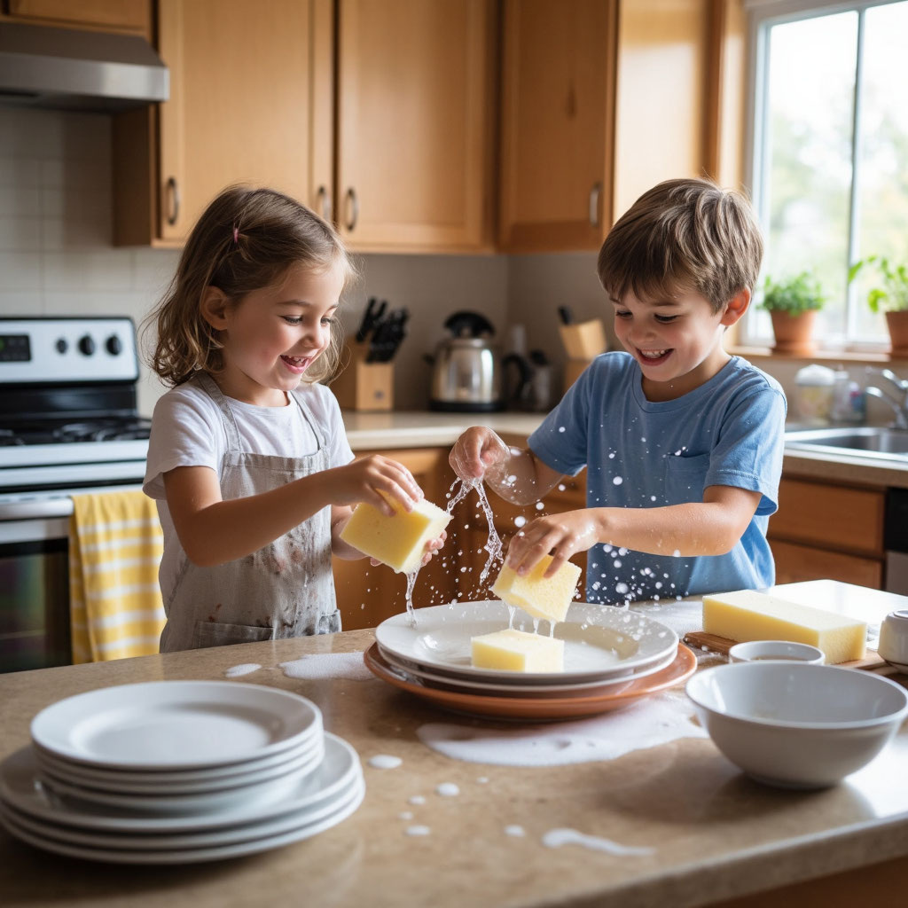 В одном уютном домике жила бабушка Агафья — душа компании и мастер неожиданных решений. К ней на выходные приехали внуки: семилетний Артём и пятилетняя Лиза. Утро началось бодро: Артём заявил, что хочет «настоящий мужской завтрак» — яичницу с колбасой. Лиза тут же потребовала «девчачий завтрак» — блинчики с вареньем. Бабушка, не моргнув глазом, объявила: — Будет вам и мужской, и девчачий! А ещё научный! И принялась за дело. Яичницу она поджарила в форме звезды, а блинчики свернула розочками. Внуки в восторге: — Бабушка, ты волшебница! — Не волшебница, а химик-кулинар! — подмигнула Агафья. После завтрака Артём решил показать, какой он взрослый: взялся мыть посуду. Лиза, желая не отставать, тоже вцепилась в губку. Через пять минут кухня напоминала фонтан: вода лилась со стола на пол, внуки хохотали, а бабушка, схватившись за голову, кричала: — Отставить потоп! Сейчас будем изучать закон Архимеда на практике! Она достала тазы, тряпки и превратила уборку в игру: кто быстрее соберёт воду.