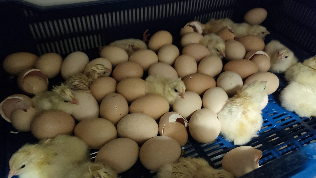 Вечером начали вылупляться цыплята.