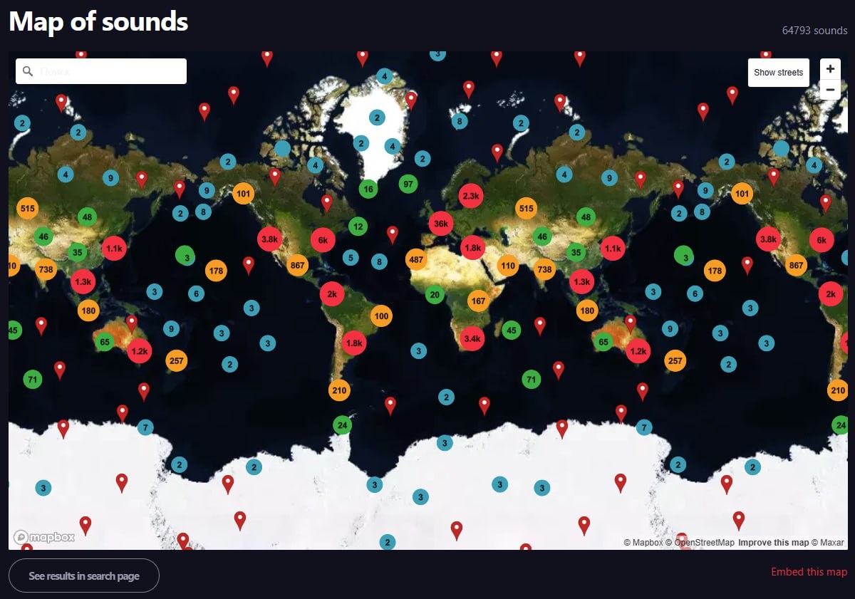 Обнаружил (бывает) на freesound.org прикольную карту звуков
