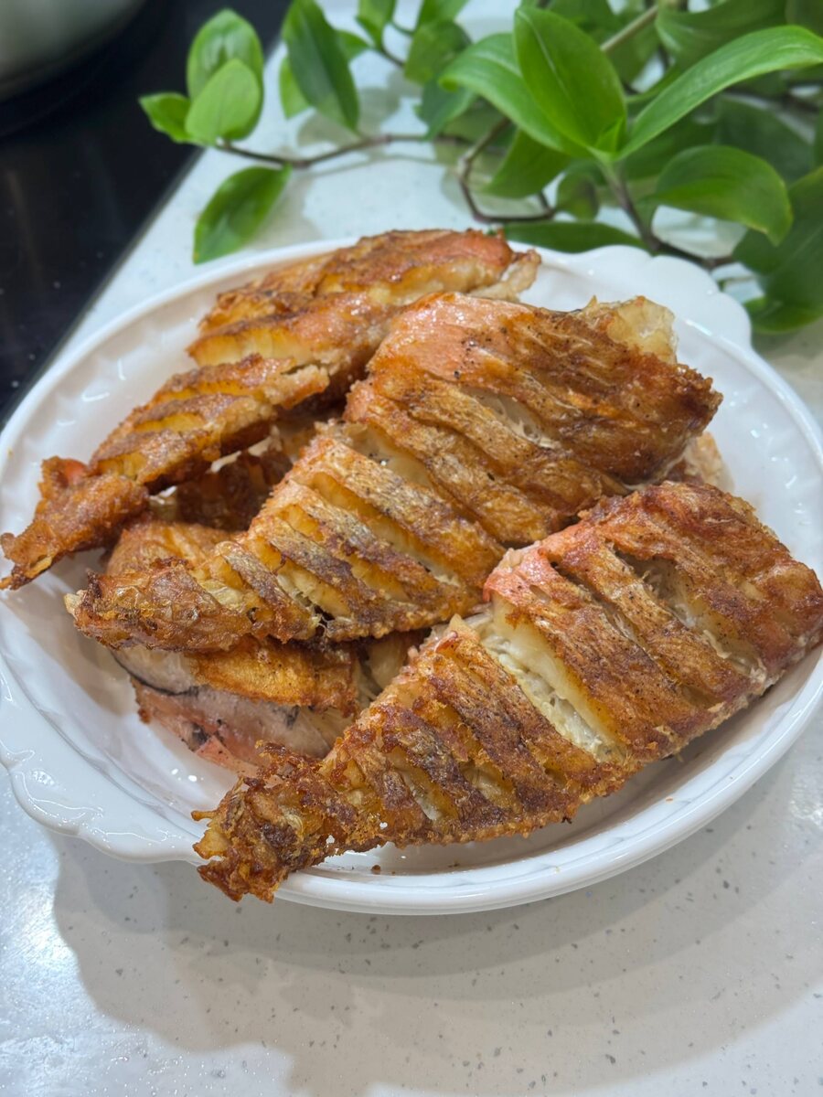 🧾Ингредиенты: ▫️Окунь ▫️Соль, перец ▫️Сок лимона (удобнее использовать в бутылочке) ▫️Масло для жарки У окуня удалить плавники, пленки и тщательно промыть. Ножом сделать надрезы поперек до хребта с расстоянием 1,5-2 см. Посыпать рыбу солью и перцем, массирующими движениями втереть. Затем нанести пару капель лимонного сока и продолжить натирать. Окуня поместить в глубокую тарелку на 20-30 минут. Затем обжарить на растительном масле на сковороде с двух сторон (примерно 4-5 минут с каждой стороны) или в аэрогриле до румяной золотистой корочки. Вкусная жареная рыба готова! Приятного аппетита! #окунь #рецепт #рыба #морскойокунь #жаренаярыба #ужин #улов #ДомашняяКухня #рыбалка #РецептНаДень #рецепты #рецептыKateVi11
