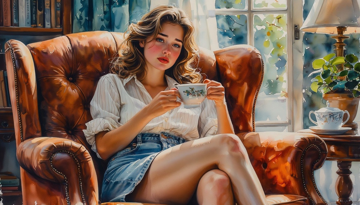 Я налил ей чай. Зеленый, без сахара - она не будет его пить, но руки займет. Классический прием, работает безотказно.