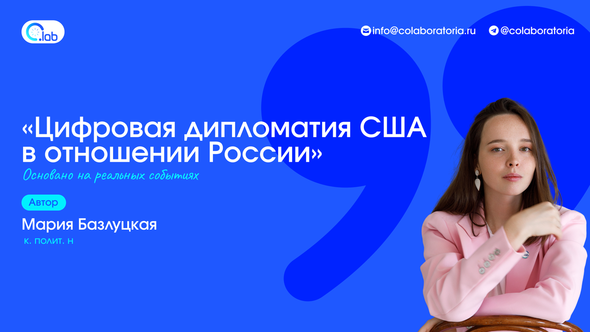 Цифровой след американской дипломатии в России Пока мы прокручиваем новостную ленту, дипломатическая игра уже идет — и в ней мы не зрители, а цель. Колаборатория рада представить первую монографию Марии Базлуцкой «Цифровая дипломатия США в отношении России», опубликованную в научном издательстве Аспект-Пресс. В этой книге — результаты четырех лет исследований онлайн-активности США. Узнайте, как Госдепартамент воздействует на российское общественное мнение в соцсетях и с помощью ИИ. Изучите механизмы формирования ценностей и национальной идентичности в цифровой реальности. Монография уже доступна в книжных магазинах МГУ, МГИМО и РУДН. Ждем скорого поступления издания в национальные библиотеки. Заказать книгу с доставкой на дом или в pdf можно по ссылке: aspectpress.ru. Больше аналитики у нас в Telegram: АНО «Колаборатория» https://t.me/colaboratoria