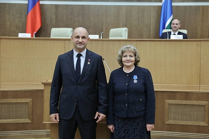 Полпред Президента РФ в УрФО Артём Жога по поручению главы государства Владимира Путина вручил Людмиле Бабушкиной орден Почёта. Государственная награда была присвоена в июле 2025 года Указом Президента РФ за достигнутые успехи и многолетнюю добросовестную работу. Людмила Бабушкина является депутатом с 2000 года, с 2007 года возглавляла Палату Представителей Законодательного Собрания Свердловской области, а с 2011 года — председатель Законодательного Собрания Свердловской области. Артём Жога поблагодарил также председателя Законодательного Собрания за деятельность по поддержке бойцов специальной военной операции и их семей. Сегодня Людмила Бабушкина в здании областного парламента представила экспозицию с изделиями для бойцов СВО. На выставке можно увидеть широкий спектр снаряжения, включая маскировочные средства: костюмы, накидки, сети, балаклавы и нашлемники. Также представлены предметы первой необходимости: окопные свечи, термоодеяла, госпитальные подушки, аптечки, бандажи, утепленные