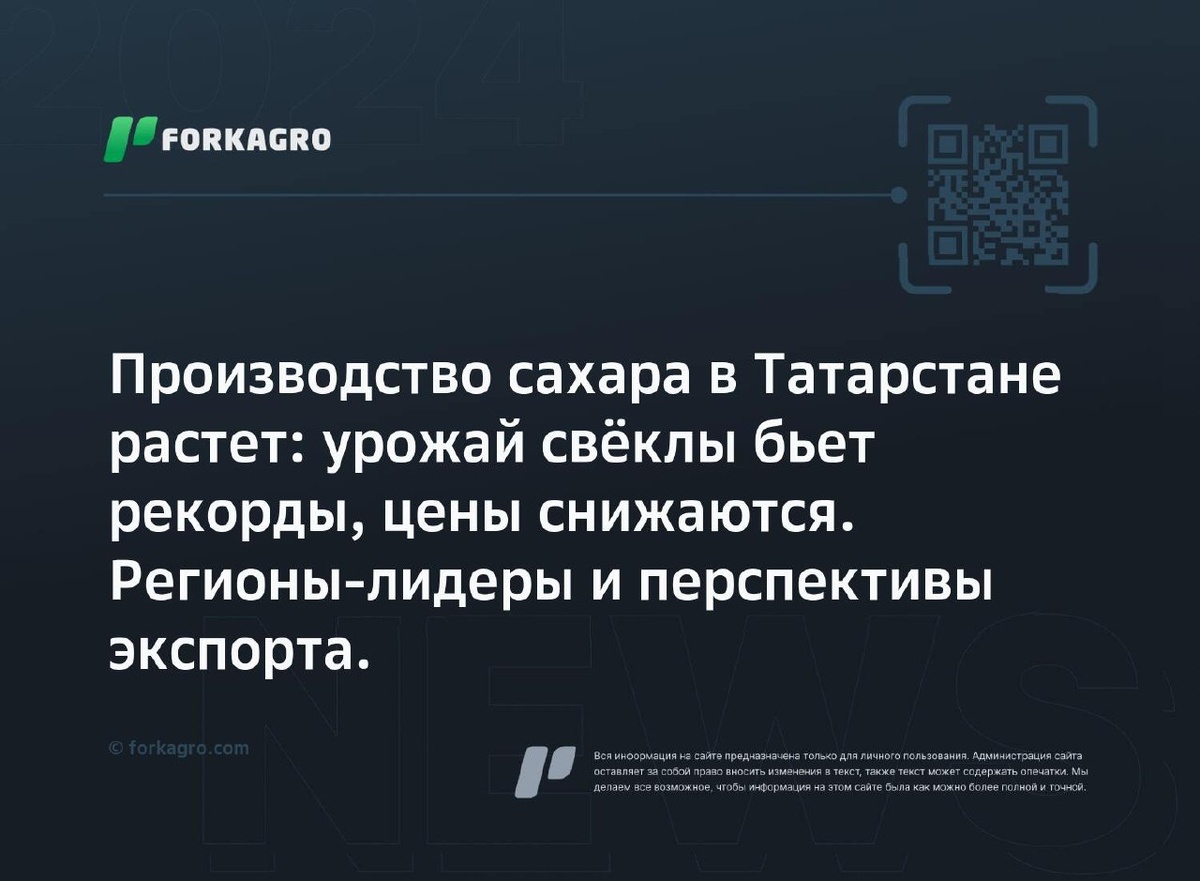 Производство сахара в Татарстане растет: урожай свёклы бьет рекорды, цены снижаются. Регионы-лидеры и перспективы экспорта. В Татарстане ожидается хороший урожай сахарной свёклы к 2025 году. Посевная площадь выросла, более половины семян отечественные. Уже собрано 84% урожая, близко к 2,2 млн тонн. Заинский и Буинский районы лидируют по урожайности. Есть избыток сахара, что приводит к спаду цен. Прогнозируется сохранение экспорта. Перейти к источнику