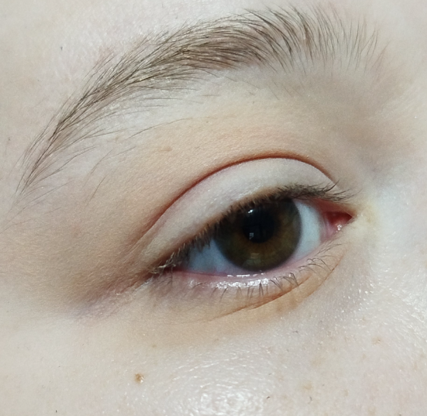 Лайфхаки по макияжу сегодня заполонили интернет. И если обычно нам предлагают что-то сложное и замороченная либо откровенно нерабочее, то в этот раз я нашла "лайфхак" по макияжу на нависшем веке, который потребует всего трех матовых теней и сияшки. А еще - одной кисти. Я всегда была сторонницей подхода "каждый цвет требует своей кисти", но тут создатель лайфхака обещает легкости. Давайте проверим. Итак, сначала едва заметным матовым бежевым цветом нам надо выстроить форму макияжа. Предварительно я нанесла базу под тени. И, да. Я пользуюсь сывороткой для бровей, чтобы отрастить их. Поэтому я ничего в данный момент не выщипываю. Дальше чуть более темным оттенком мы углубляем цвет. По-сути - просто проводим им по контуру светлого бежевого вновь. Дальше - этой же кистью в самом темном оттенке ставим точку затемнения, но не в углу глаза, где мы это делаем обычно, а еще и на веке. На кисти уже много цветов. Ими тушуем эту темную точку - как в складку, так и к внешнему углу. Как по мне