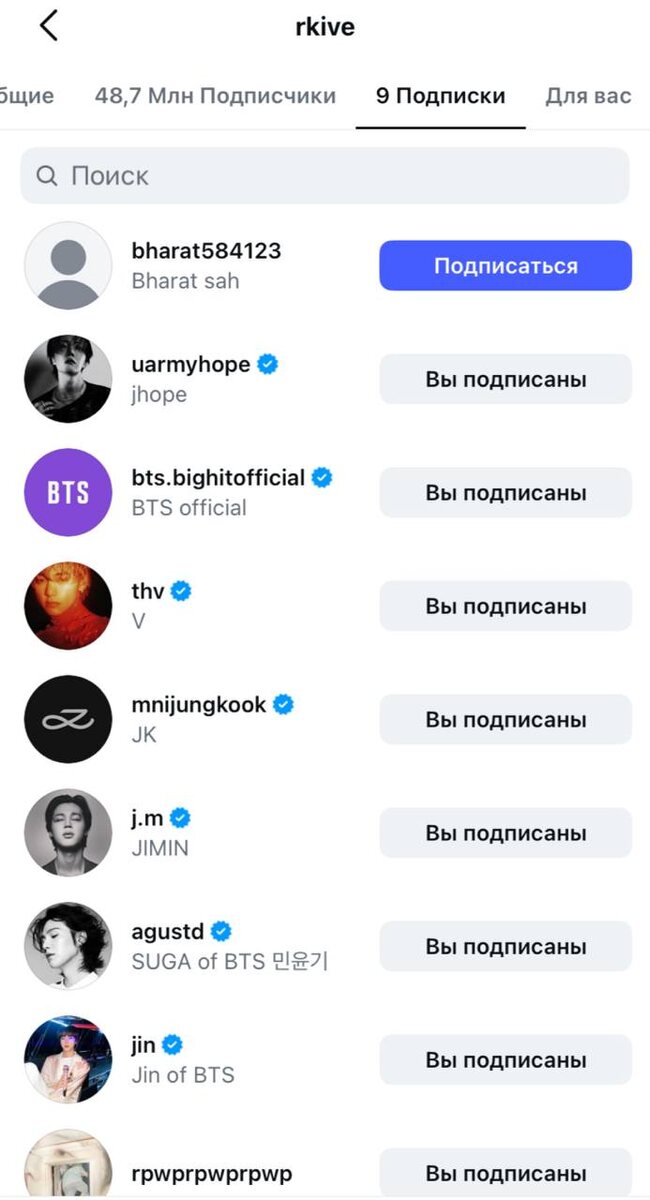 🔮 Намджун подписался на неизвестный аккаунт а Instagram
