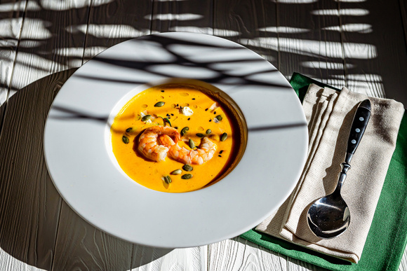 Пряный тыквенный суп с креветкой от Павла Хорсова, шеф-повара ресторана “Рыбная Мануфактура №1”