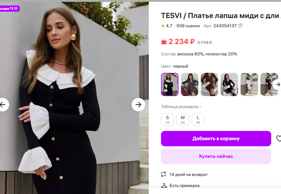 Быть стильной в офисе-легко! Подборка модных платьев с белыми воротничками на WB.