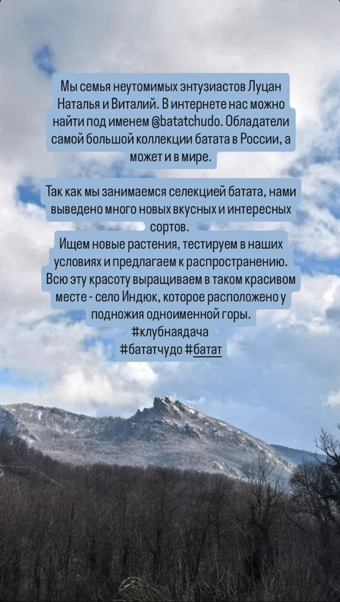 ВНИМАНИЕ! ОСТЕРЕГАЙТЕСЬ МОШЕННИКОВ В НАШЕЙ ГРУППЕ! Дорогие участники! К сожалению, активность живой группы, подобной нашей, привлекает не только настоящих подписчиков, но и мошенников, стремящихся нажиться на доверии людей. В последнее время мы наблюдаем попытки проникновения ботов и недобросовестных личностей в наши ряды. Будьте бдительны! Чтобы обезопасить себя, запомните несколько важных правил: * Заказы принимаем ТОЛЬКО я, Луцан Наталья Алексеевна, и мой муж, Луцан Виталий Васильевич. Никаких других лиц, якобы представляющих нашу группу, у нас нет! * Если сомневаетесь, всегда можете написать нам на почту: batatchudo@gmail.com. Это самый надежный способ убедиться, что вы общаетесь именно с нами. * Все заказы отправляются ИСКЛЮЧИТЕЛЬНО из Туапсинского района, село Индюк, расположенного под знаменитой горой Индюк. Если вам предлагают отправку из другого места – это мошенники! * У нас НЕТ помощников! Если кто-то в группе представляется нашим именем и предлагает свои услуги – не верь