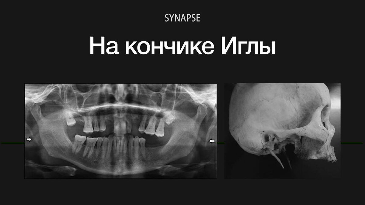 Осмотр выявил пальпируемый костный выступ в правой тонзиллярной ямке. А последующая КТ подтвердила два удлиненных шиловидных отростка — размером 5.5 см справа и 5.2 см слева. Это редкий диагноз, заподозрить который помогает сочетание: 📌 Аномального удлинения шиловидного отростка височной кости или оссификации шилоподъязычной связки. 📌 Связанных с этим жалоб, ведь большинство пациентов с такими изменениями их не имеют. В зависимости от того, какие структуры контактируют с удлиненным шиловидным отростком, синдром Игла может проявляться различным образом. Сам Игл выделял две формы: Однако недавно также была описана третья форма: Средний возраст пациентов с синдромом Игла обычно составляет 30-40 лет. Причина возникновения боли у пациентов, ранее не имевших симптомов, до сих пор является предметом споров. Среди основных теорий: 📌 Инволюционные изменения, связанные со старением. 📌 Реактивный стилоидит, вызванный инфекциями глотки, травмой, тонзиллэктомией. Не забудьте поставить ❤️🔥, ес