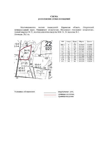 Название: Местоположение лесных насаждений: Кировская область, Опаринский муниципальный округ, Опаринское лесничество, Моломское участковое