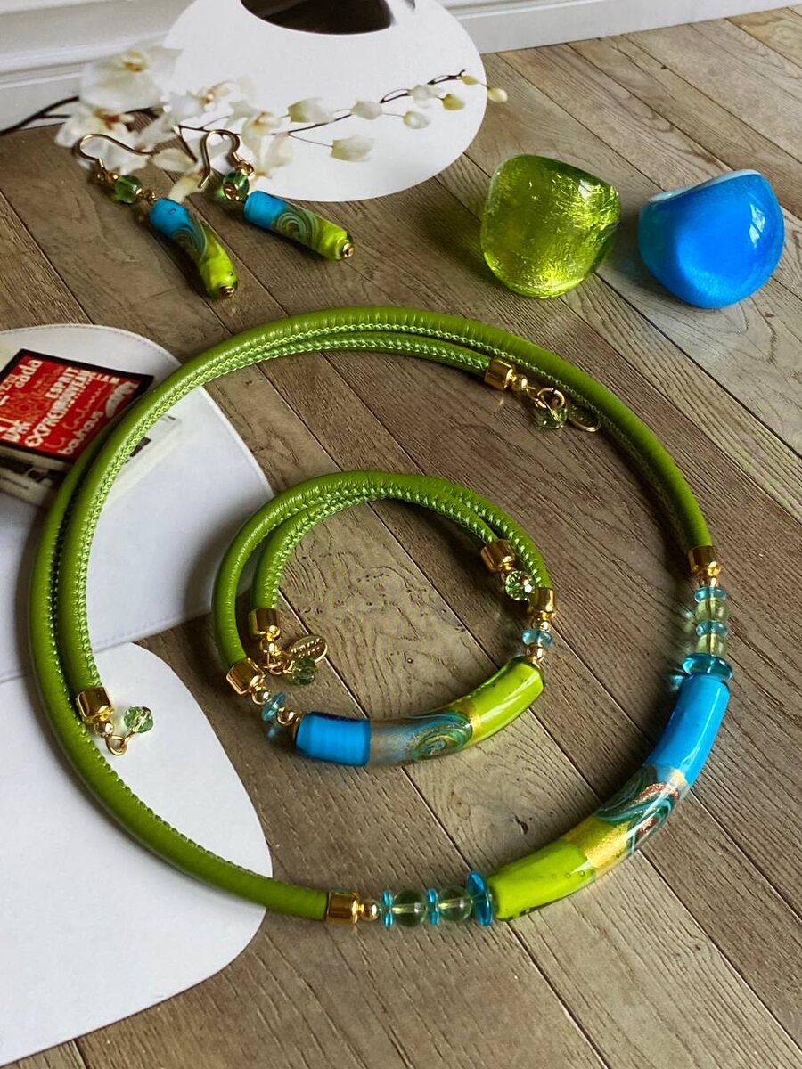 Добавьте в осенний образ ярких красок 💚🩵 Набор Maestro с овальной бусиной (Колье+браслет+серьги) 18500₽ Кольцо Monocolor из муранского стекла 4500₽ #оригинальноемуранскоестекло