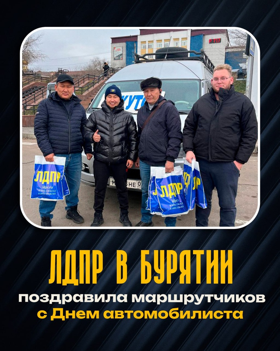 ЛДПР поздравила водителей с Днём автомобилиста Координатор Улан-Удэнского городского отделения ЛДПР Баир Гармаев поздравил водителей маршрутного такси с профессиональным праздником — Днём автомобилиста. Работники маршрутного транспорта выполняют важную социальную функцию, обеспечивая бесперебойное передвижение горожан, своевременную доставку пассажиров и поддержание транспортной инфраструктуры республики. Их работа требует высокой ответственности, внимательности и профессионального мастерства, что напрямую влияет на уровень комфорта и безопасности жителей города. Координатор лично поздравил водителей, вручил памятные подарки и поблагодарил коллектив за добросовестный труд. «Вы ежедневно обеспечиваете передвижение тысяч жителей города. Желаю вам крепкого здоровья, безопасных дорог и дальнейших профессиональных успехов. Пусть ваша работа всегда будет оценена по достоинству», — отметил координатор Улан-Удэнского городского отделения ЛДПР Баир Гармаев.