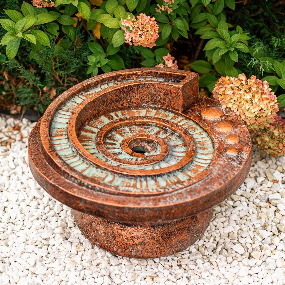 Недаром фонтаны и водоёмы — неотъемлемая часть восточных садов дзен. Фонтан «Инфинити» от HiTSAD воплощает эту философию. Его спиральная форма символизирует бесконечное течение жизни — спокойное, но мощное. Вода плавно скользит по виткам, отражая солнечный свет и создавая ощущение движения даже в тишине. Фонтан выполнен из высокопрочного композита с патинированной отделкой под старую медь. Это не только эстетика, но и практичность — материал