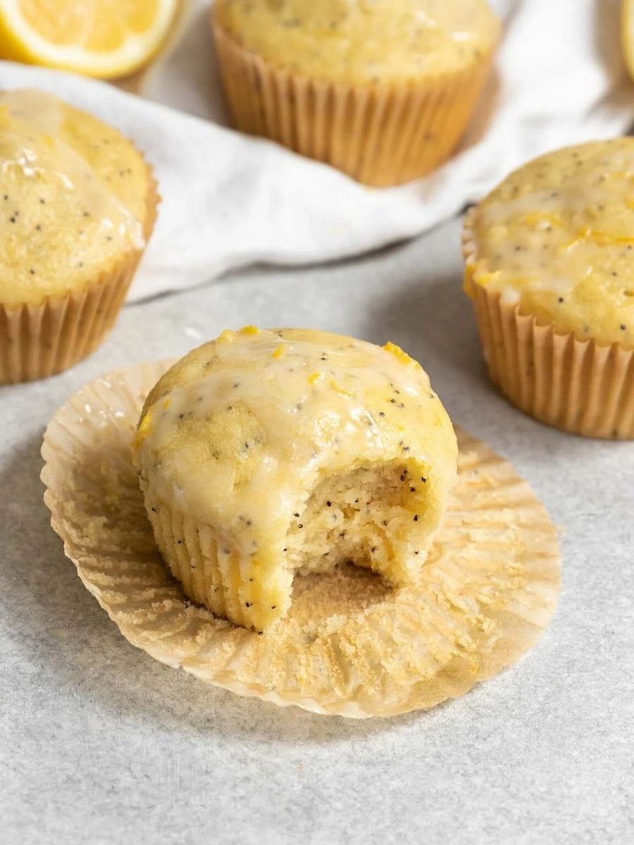 Если хотите усилить лимонный аромат, увеличьте цедру до 1,5 ст. л. Для более сладкой глазури добавьте ещё немного пудры, а вместо яблочного пюре можно использовать банановое пюре — так кексы получатся чуть слаще и более влажные. Для хрустящей корочки слегка посыпьте тесто сверху тростниковым сахар