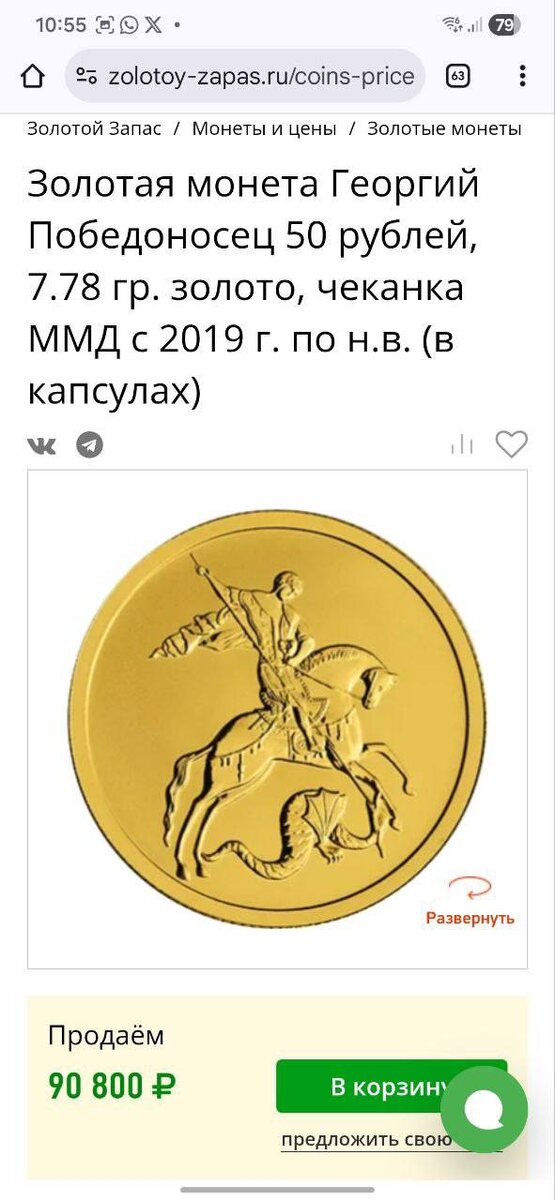 #инвестиции в золото Золотые монеты Георгий Победоносец, номинал 50 руб. Этот инструмент подходит для тех, кто любит инвестировать в недвижимость и валюту, так как доходность чаще всего сопоставима. Но точно также бывают периоды девальвации, когда доходность кратно выше. Например я сразу после 26.02.2022 попросил друга срочно купить этих монет. В итоге он смог это сделать только 28.02.2022г. Цена одной монеты 28.02.2022г. составляла 46500 руб. 20 октября этого года, понимая, что золото на хаях - я их продал по 88750 руб.(в моменте было 90500, если бы продал 17 октября, но там в пятницу уже меня не записали, а в выходные они не работают). Короче +- х2 за 3 года. Цена монеты зависит от 2х факторов: 1)цена золота на бирже 2)цена доллара по отношению к рублю(сейчас например бакс по 80 руб, но золото на хаях - монета дала х2. Если бы и бакс был по 100-110 - могло бы быть уже и х3, но пока вот так). При этом вы скажете - да,да, да, хаты тоже иксанули + доход с аренды ещё есть. Во-первых