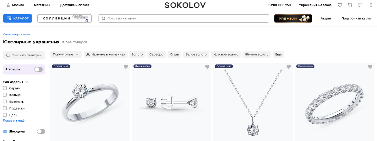 Официальный сайт SOKOLOV — это настоящее кладовая вдохновения для всех, кто ценит роскошь и стиль. Удобная структура и основные разделы позволяют быстро найти нужные украшения. Для удобства клиентов добавлен фильтр по категориям изделий, металлам и даже цвету камней, упрощая процесс выбора.
