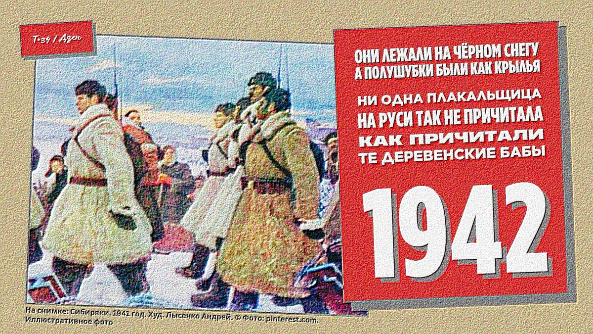 «...в то утро Матрёна ещё до рассвета застучала в оконные ставни: "Выбегайте живо! Наши идут! Все на улицу! Войне теперь конец настанет. Сам Сталин сибиряков направил! Уж теперь немцам точно не справиться, какая мощь! Богатыри!". И всё село высыпало на дорогу — своих освободителей встречать. Надо было увидеть, как они двигались! Четвёркой в каждом ряду. Рослые, могучие, стройные, красавцы! Словно специально отобранные! В белоснежных полушубках, белых валенках... И было их такое множество, что начавшие считать сельчане быстро сбились со счёта. Мощные кони везли артиллерию. А сибиряки всё шли и шли...