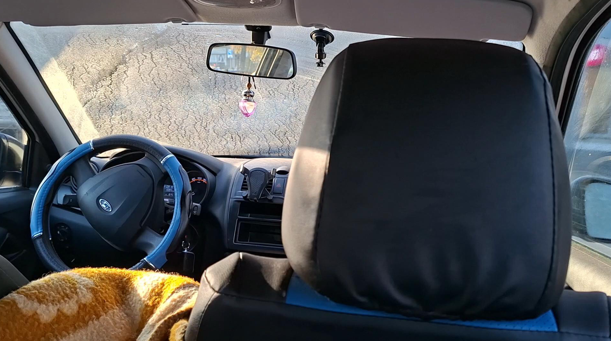 И даже по пути к лесопарку есть скала «Каменная чаша» — с лавочками, информационными стендами и парковкой. За 30 лет жизни я узнала об этом месте только сейчас. Иногда всё, что нужно — просто посмотреть на карту. Утро выдалось холодным: машина покрылась льдом, ночью были заморозки. Но мы не испугались — собрались не спеша, заправили машину и отправились в путь. Цель — удивить Симбу новыми запахами, новыми тропинками, новыми впечатлениями. По дороге нас встречали массивные скалы, горные обрывы, тишина… И вдруг — первое испытание. Оставив машину у посёлка, мы едва успели