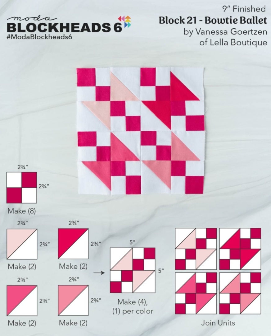 Блок 21. Танец бабочек. Дизайнер Vanessa Goertzen. Готовый блок 9”. Инструкции по раскрою Инструкции по сборке Также, буквы обозначают цвет ткани. Одинаковые буквы= один цвет ткани, что несколько усложняем процесс описания пошива. Шаги Очень полезный в пошиве блок! Тренирует навыки шитья по квадратам и треугольникам. На выходе также возможны варианты, включая звезду! 1. На обратной стороне квадратов А начертить диагональ. Совместить квадрат А с квадратом С и проложить 2 строчки на расстрянии 1/4" от диагонали. Разрезать по диагонали и заутюжить шов на более темную сторону. Сшить 2 квадрата АС. Повторить процесс с квадратами А и квадратами D, E и F, чтобы получить по 2 квадрата AD, AE и AF. Размер детали с припусками 2 3/4". 2. Разложить 2 маленьких квадрата А и 2 квадрата В согласно схеме и сшить в ряды. Ряды сшить между собой и разутюжить. Сшить 8 квадратов. Размер детали с припусками 2 3/4". 3. Взять 2 квадрата АС из шага 1 и 2 квадрата АВ из шага 2, разложить по схеме и