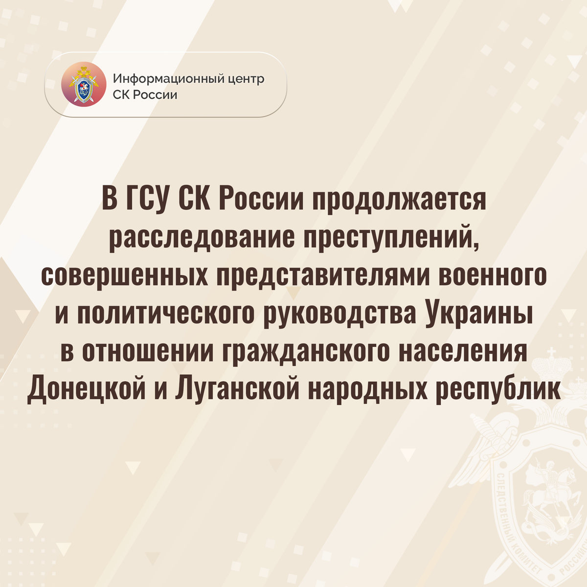 В ГСУ СК России продолжается расследование преступлений, совершенных представителями военного и политического руководства Украины в отношении гражданского населения Донецкой и Луганской народных республик