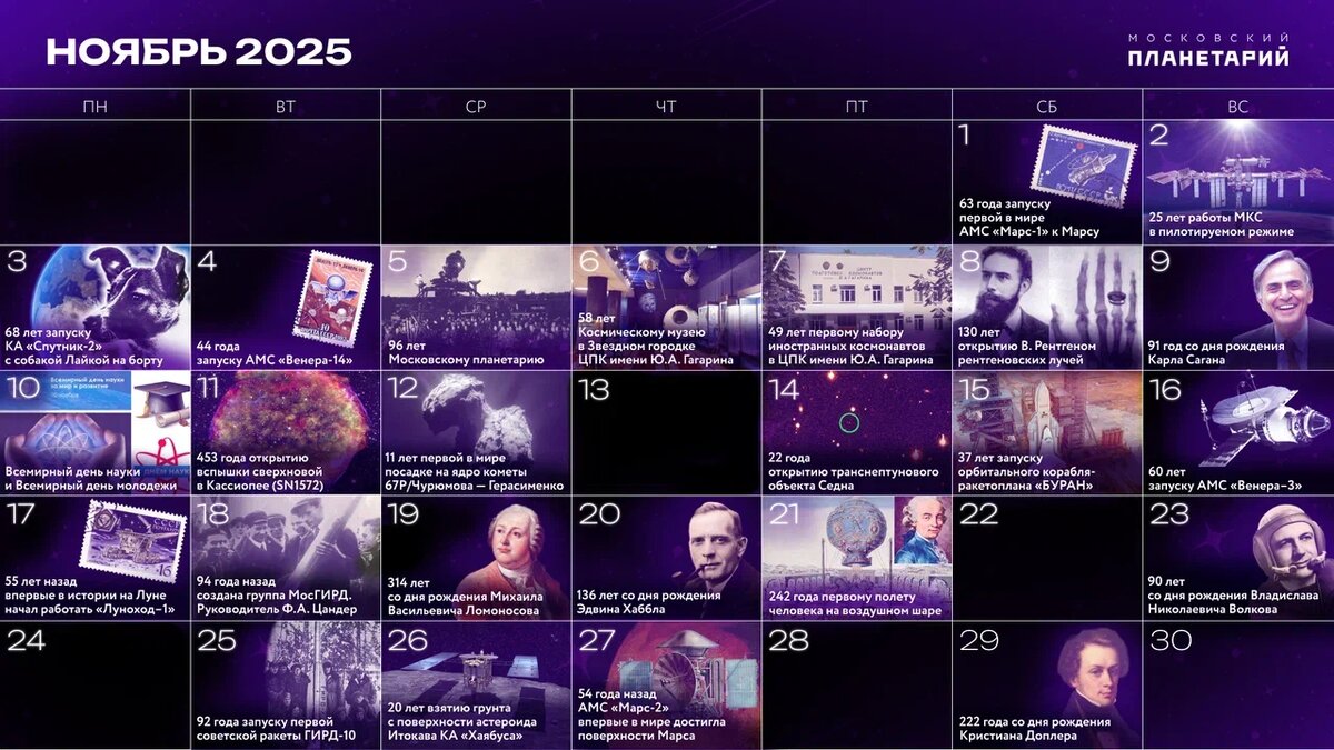 ⭐️ Избранные даты и события ноября 2025 года в астрономии и космонавтике: