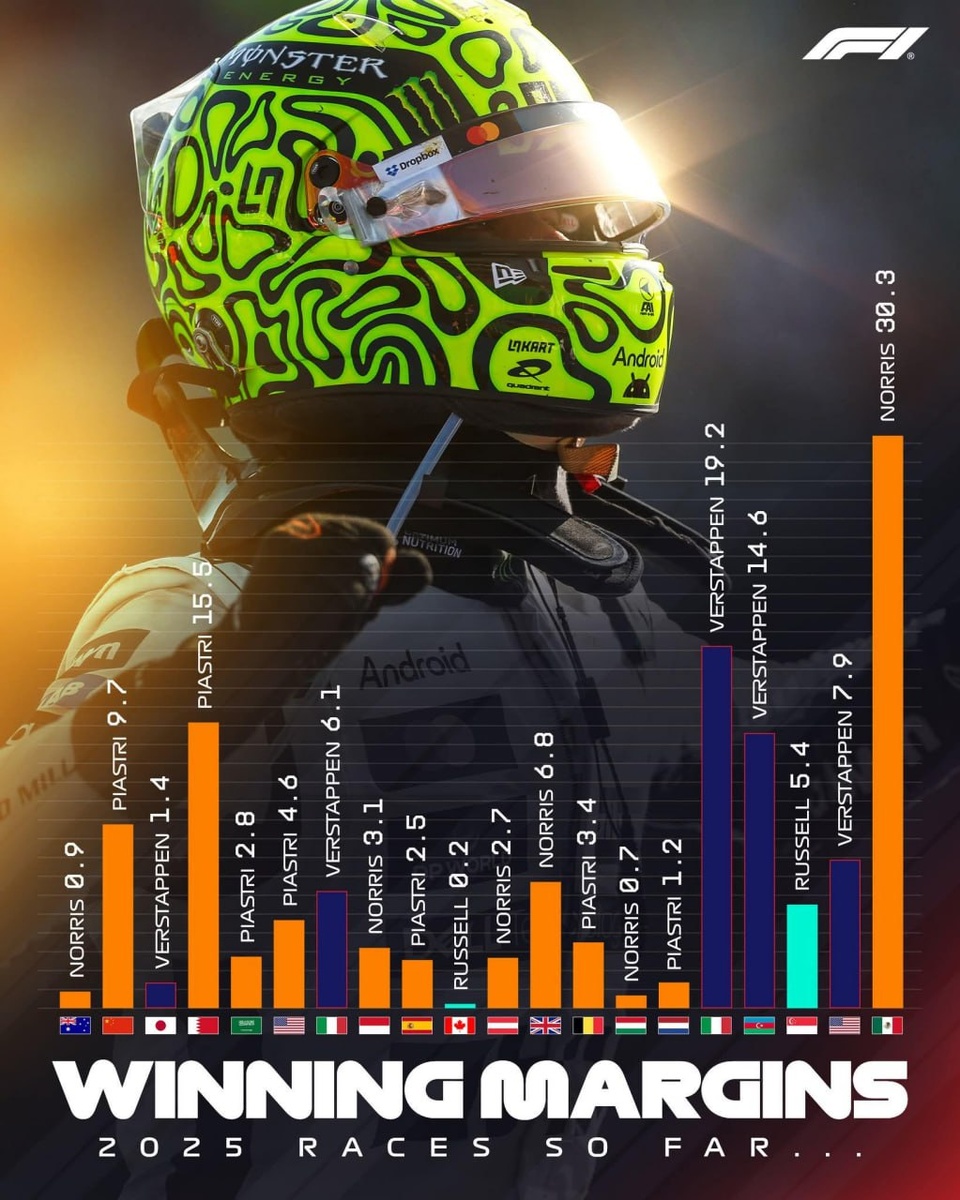 Ландо Норрис одержал победу в Мексике с наибольшим преимуществом за сезон