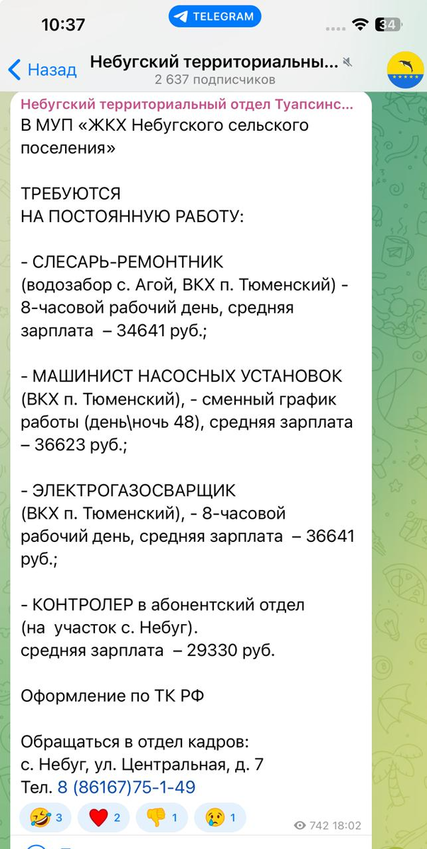 Думаю, все переезжающие трудоспособного возраста интересуются вакансиями на новом месте жительства. Исключение: пенсионеры и удаленщики. Как бы ни было привлекательно переехать на юг, советую 100 раз подумать, 100 раз отмерить и только потом переезжать. Жаль людей, которые потратили деньги, силы и время, а потом были вынуждены вернуться обратно. Давайте честно, каким бы высококвалифицированным специалистом вы не были, достойного места здесь вы, скорее всего, не найдете. Вы же понимаете, люди здесь тоже растут по карьерной лестнице и вы сразу встать на один уровень с ними не сможете - там просто для вас нет места. Поэтому, если вы переезжаете не потому, что вас пригласили сюда на высокооплачиваемую должность, будьте готовы занять линейные должности. Напоминаю, что я сейчас живу в поселке Агой - побережье Черного моря, пригород Туапсе. И вот вам реальные объявления: Но все не так печально. Есть сфера, в которой реально можно заработать - строительство и ремонт. Здесь строят все и везд